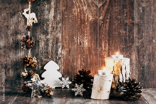 Christmas Cozy Composition Xmas Decorations On Dark Vintage