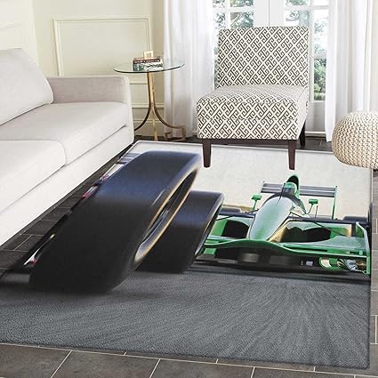 Amazon Com Cars Rug Kid Carpet Sports Theme Indy Cars On An