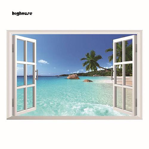Bighouse 3d Beach Sea Window Ocean View Scenery Wall Sticker Home Decor Diy Room Decal