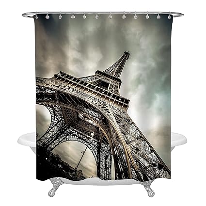 Mitovilla Majestic Eiffel Tower Paris Landmark Shower Curtain Set With Hooks No Liner Needed Paris Landmark Bathroom Curtain For Industrial Home