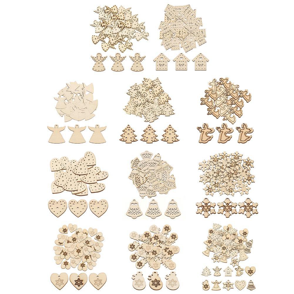 50pcs 3cm Wood Christmas Decorations Diy Xmas Tree Hanging Ornaments Pendant Home Wedding Decor