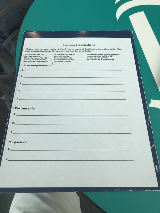 Solved Business Organizations Match The Characteristies O